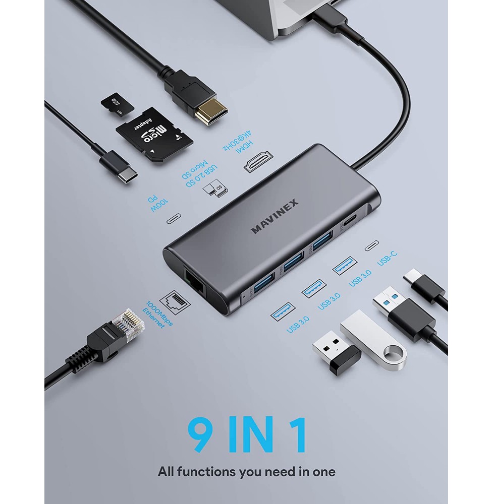 Warning: unlink(/var/www/domen-8/data/www/storage8-0/cache/cache.catalog.language.1765130354): No such file or directory in /var/www/domen-8/data/www/www.frenchnoob.cyou/system/library/cache/file.php on line 68Warning: unlink(/var/www/domen-8/data/www/storage8-0/cache/cache.catalog.language.1765130354): No such file or directory in /var/www/domen-8/data/www/www.frenchnoob.cyou/system/library/cache/file.php on line 68 USB C Hub 9 in 1, MAVINEX USB C Adapter 4K to HDMI, 100W Power Delivery, 5Gbps USB-C Data Port, 3 USB 3.0 Ports, MicroSD/TF, 1Gbps Ethernet Docking Station for MacBook, Dell XPS, More Type C Devices