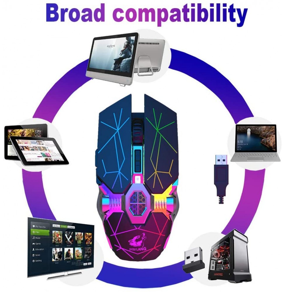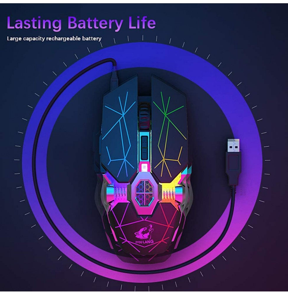 Wireless Gaming Mouse Rechargeable,RGB Multi-Colour Backlit Game Mice with 7 Buttons Computer Accessories,2.4G Silent Optical,3 Adjustable DPI Game Mouse Power Saving Mode for Laptop/PC/Notebook